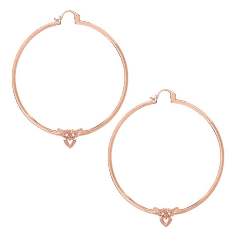 Our Amorette rose gold hoop earrings are destined to be your new favorite lightweight earrings. These elegant lightweight 2.5 inch hoops with a touch of detail are a simple way to rock a minimalist style with maximum impact. Add some variety to your capsule wardrobe with these rose gold beauties. Cast from 70% recycled stainless steel and rose gold-plated Each earring measures 2.5 inches in diameter Ethically made with people and the planet in mind