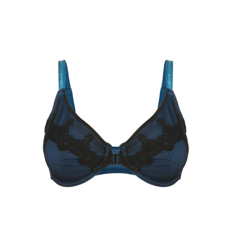 Elysia – Navy Blue Silk & Organic Cotton Front Closure Full Cup Underwired Bra