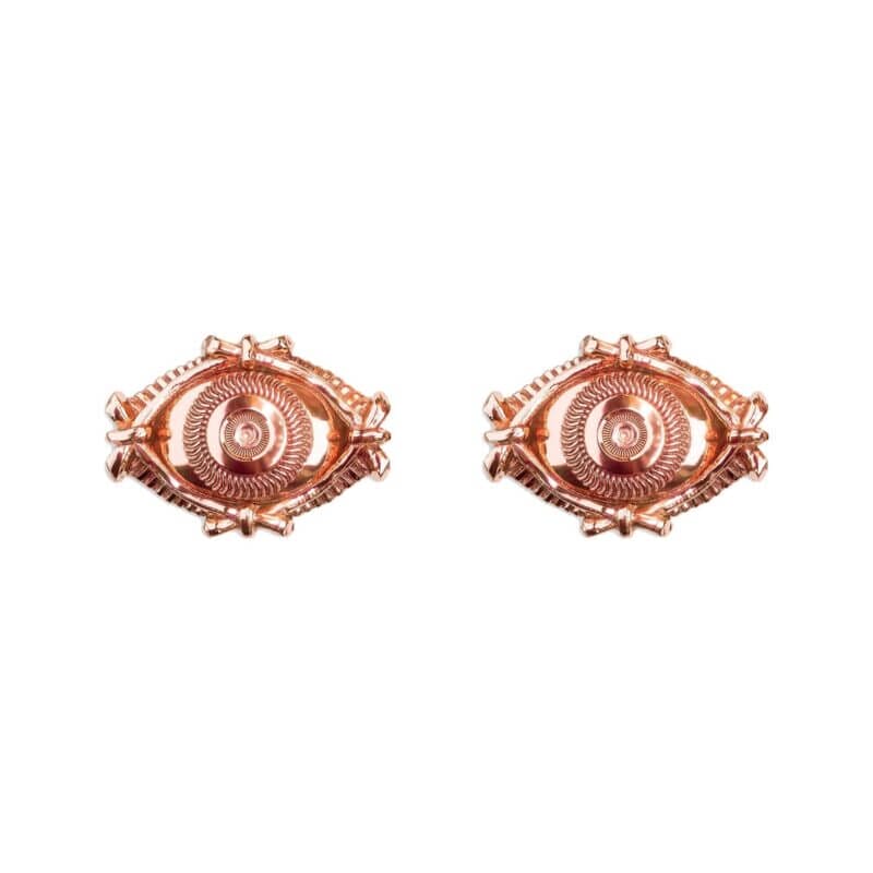 Our Eye rose gold stud earrings are destined to be your new favorite way to complete your look. Wear these as a simple accent to your favorite t-shirt and jeans, or use them in a second piercing paired up with a hoop for an edgier look. Cast from 70% recycled stainless steel and rose gold-plated Each earring measures approximately 0.4 inches Ethically made with people and the planet in mind